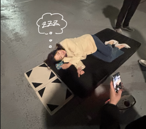 공개된 사진 속 김희선은 촬영장으로 보이는 주차장에 놓인 간이 테이블(혹은 구조물) 위에 편안하게 누워 깊은 잠에 빠져 있다. 고된 촬영 일정으로 인해 잠시 틈을 내 눈을 붙인 것으로 보인다.