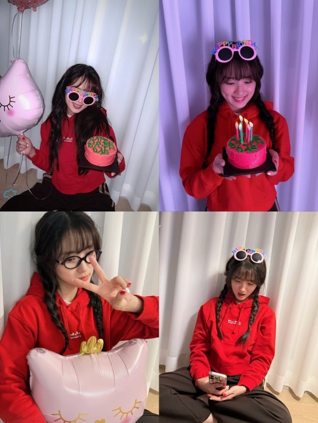 김혜윤 소셜네트워크서비스 계정사진 속엔 11월 10일 생일을 맞이해 축하하는 자리를 갖는 김혜윤의 모습이 담겨 있다. 김혜윤은 생일 케이크와 풍선을 각각 손에 들고 생일 안경까지 쓴 채 환한 미소를 짓고 있다. 입술을 쭉 내민 애교스러운 표정이 사랑스럽다. 레드 컬러 후드티셔츠를 입은 김혜윤은 나이의 믿기지 않을 정도로 소녀같은 비주얼을 자랑한다.