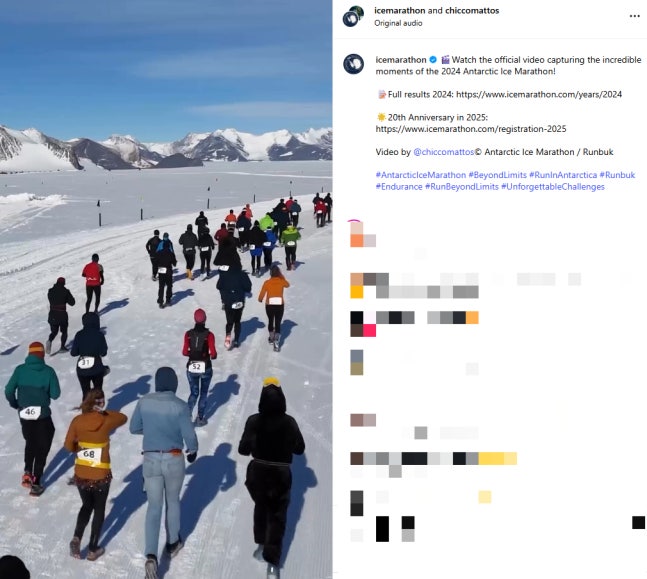 /사진=남극 얼음 마라톤 대회 SNS이후 남극에 체류 중인 멤버가 누구인지를 두고 "다니엘이 남극 마라톤 대회 참가를 위해 머물고 있다"라는 주장이 주목을 이끌고 있다. 이에 따르면 오는 12월 13일 남극에서 열리는 마라톤 대회에 다니엘이 참가하기 위해 머물고 있다는 것.