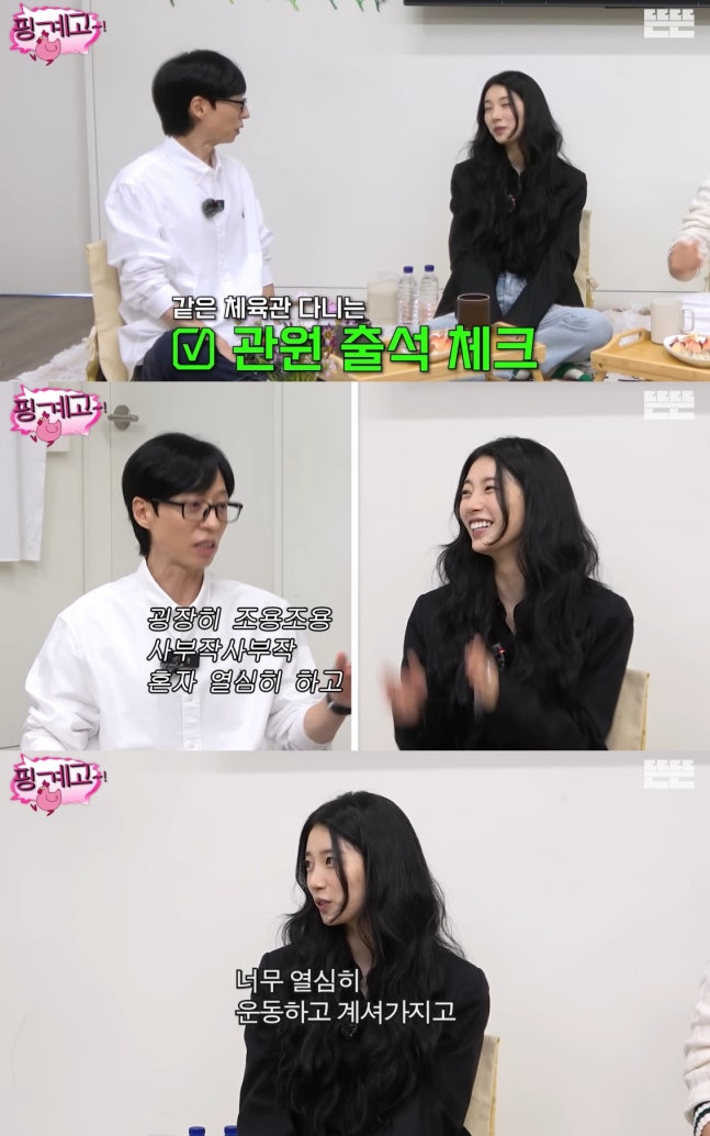 유재석은 수지를 보자마자 "요즘 왜 체육관 안 나왔냐"며 근황을 확인했고, 수지는 "저 운동 해야하는데 바빴다"고 답했다. 유재석은 매번 같은 체육관에 다니는 연예인들을 '관원'이라고 불러 팬들의 궁금증을 불러일으켜왔다.