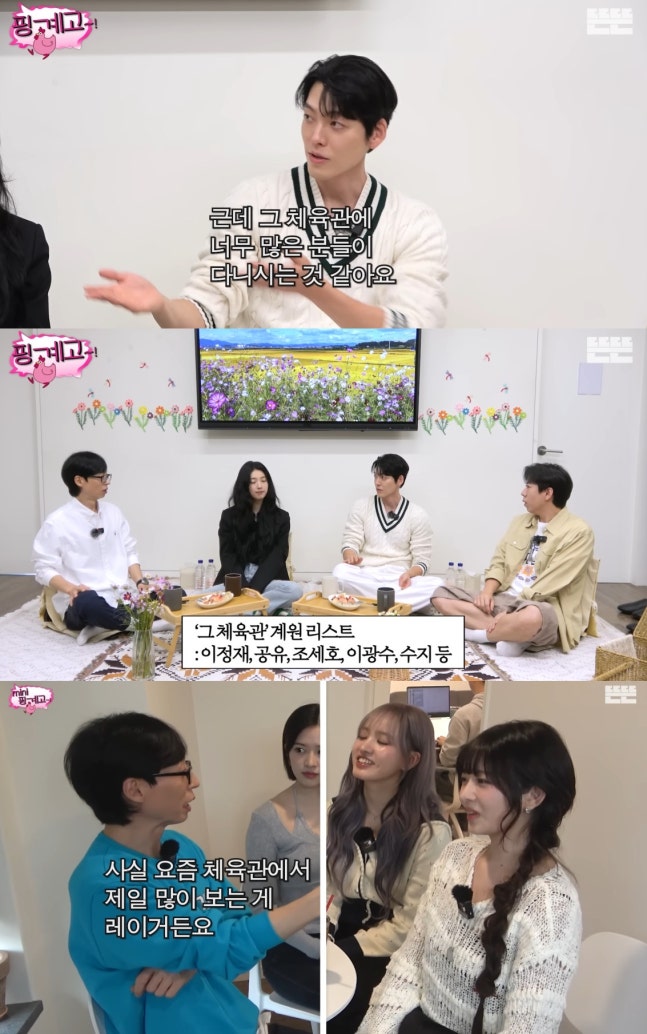 김우빈은 "그 체육관에 너무 많은 분들이 다니시는 거 같다"고 짚었고, 유재석은 "너무 많이 다닌다"고 답했다. 해당 체육관에는 이정재, 이광수, 조세호, 공유 등이 다니는 것으로 알려져있으며, 아이브와 레이, 리즈, 안유진 또한 유재석에게 운동 잔소리를 듣기도 했다.