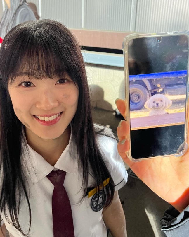 교복을 입고 청순미와 귀여움을 동시에 뽐낸 김혜윤. 그의 소속사는 '선업튀' 방영 이후 촬영 중인 김혜윤의 사진만 공개한 터라 팬들에게 원성을 사기도 했다.