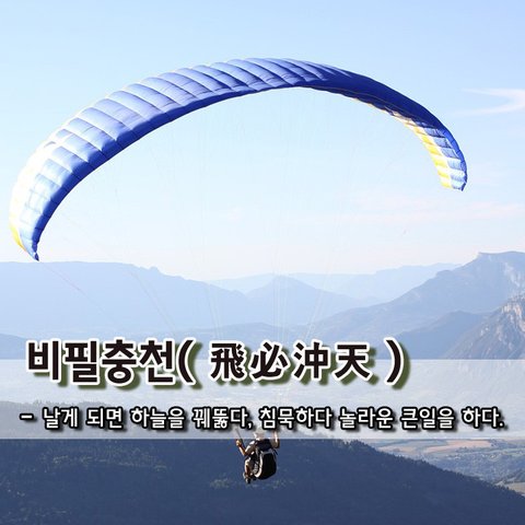비필충천(飛必沖天) - 날게 되면 하늘을 꿰뚫다, 침묵하다 놀라운 큰일을 하다.날 비(飛/0) 반드시 필(心/1) 화할 충(氵/4) 하늘 천(大/1)