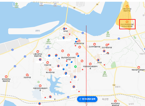군산은 지금 구도심(빨간선 좌측), 신도심(빨간선 우측)으로 나뉘어있고구도심에는 노령 인구가 많아지고 있고, 신도심은 젊은 부부+유아 인구가 늘어나고 있는 추세입니다.그래서 선 우측의 유치원들은 포화상태로 자리가 없는 실정입니다.