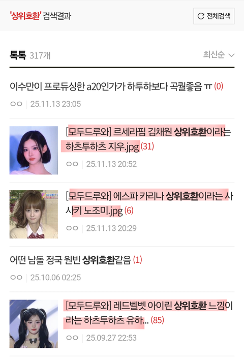 그런데 이런 흔한 뻘글을 굳이 클릭해서 조회수 늘리고 반대 누르고 댓글 달면서 톡선 보내고 북치고 장구치는 거 보니까 판녀들 또 여돌로..