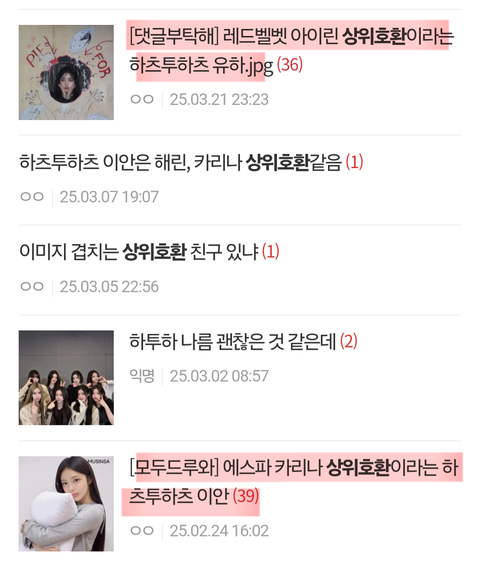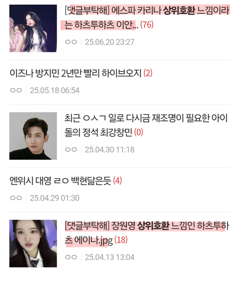 하투하 하츠투하츠 이안 유하 지우 에이나 카르멘 에스파 카리나 윈터 레드벨벳 아이린 르세라핌 김채원