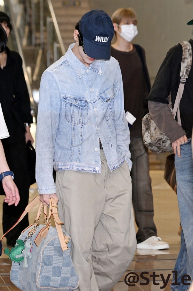 라이즈 원빈은 네이비 볼캡으로 담백한 스트리트 무드를 주도했다. 라이트 워시 데님 재킷과 체크 보스턴백의 은은한 하늘색 색감에 볼캡이 무게감을 더해준 셈. 모자의 화이트 레터링도 전체적인 룩에 포인트가 된다. 와이드 베이지 팬츠로 실루엣을 여유 있게 풀어 균형을 맞춘 센스도 돋보인다.