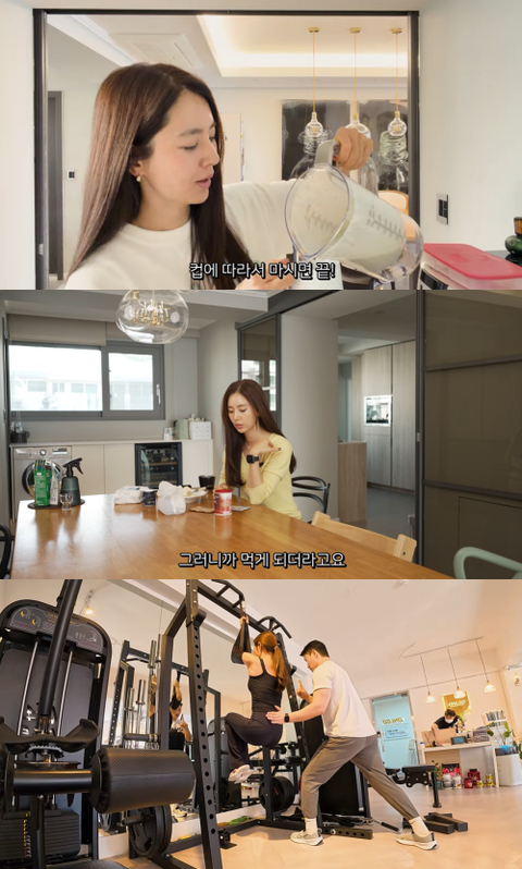 영상에서 한채아는 아침부터 쉐이크를 먹으며 식단을 관리했다. 한채아는 “쉐이크를 먹을 때 모링가 분말을 넣는다. 몸에 좋다고 한다. 아침에 단백질을 꼭 먹어야 해서 가루도 한 스푼 넣는다. 이렇게 해서 갈아준다”라고 했다.