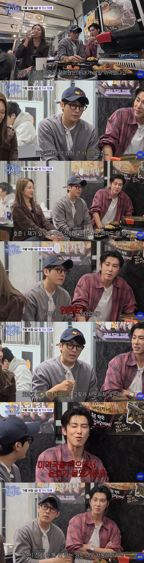 손호준은 "제가 미역국을 성심성의껏 끓여서 생일파티를 해줬다. 얘(유노윤호)가 안 울었으면 그렇게 서운하지 않은데 미역국을 먹으면서 윤호가 감동 받아서 울었다"며 "그래서 전화 한 통 안 하는 거는 너무 서운하더라"고 솔직한 속내를 털어놨다.