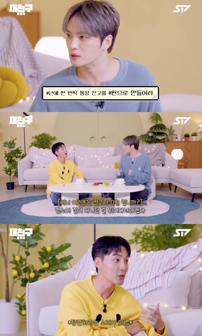 김재중은 "그동안 모은 게 어떻게 0원이 되냐면, 내 통장이 아닌 다른 곳에 보내 놓는 거다. 투자하는 것'이라며 "내 입출금 통장을 0원으로 만든다"고 부연했다.