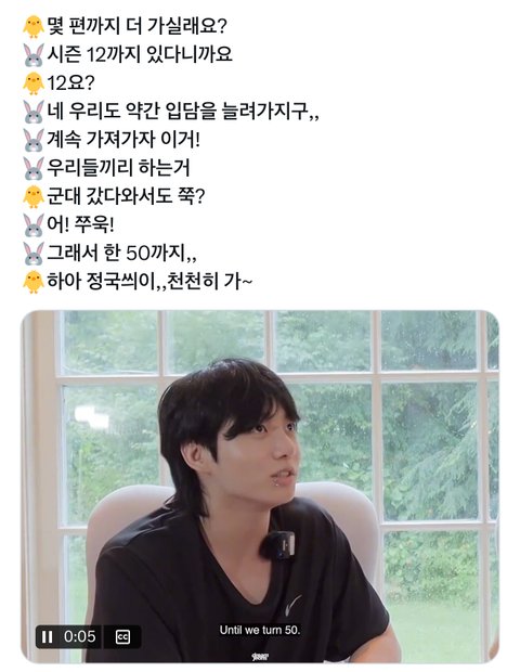 정국이 지민이랑 이게맞아 시즌 12까지 둘이 50살 될 때까지 찍겠다더라
