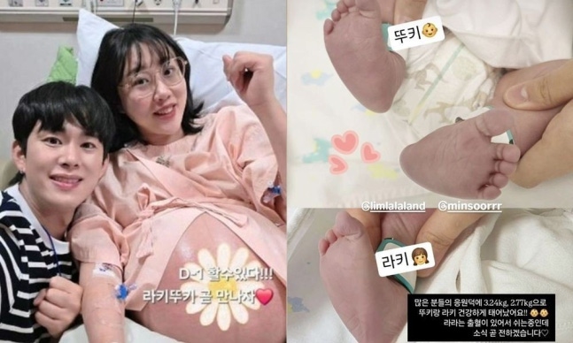 얼마 전 출산한 코미디언 임라라-손민수 부부가 쌍둥이 아들, 딸의 모습을 첫 공개했다. 지난 29일 두 사람은 개인 채널에 '큰고비 끝에 기적같은 만남 드디어 쌍둥이 아가들 출산![임신일기 33화]'라는 제목의 영상을 게재했다.