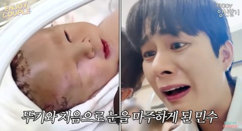 그는 신생아임에도 불구하고 눈을 뜨고 있는 뚜키의 모습에 웃음을 터트리기도 잠시 얼굴에 상처가 난 채 등장한 라키를 보고 놀란 모습을 감추지 못했다. 이에 그는 의료진에게 "왜 상처가 있어요?"라고 물었고 의료진은 "아기가 거꾸로 뒤집어져 있어서 그렇다. 시간 지나면 없어질 거다"라고 말해 걱정을 잠재웠다. 다행히 이후 영상에서 손민수는 자막을 통해 "눌린 자국은 현재 다 없어졌답니다"라고 덧붙였다.