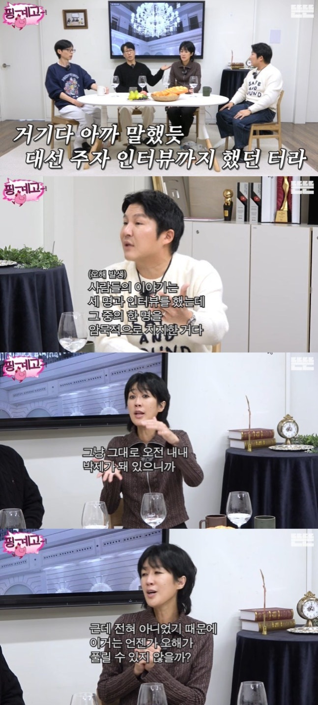 마지막으로 스웨덴 스톡홀름에 도착했다는 홍진경은 “스톡홀름에서는 비즈니스 일정이 없어서 가자마자 풀어진 거다. 내 숙소 바로 걸어서 150미터 거리에 내가 제일 좋아하는 브랜드 매장이 있었다. 거기를 달려갔는데 너무 예쁜 빨간 스웨터가 있는 거다”라며 “그 빨강이 너무 영롱했다. ‘이거다’하고 입고 사진을 막 찍었다. 대선이라는 생각을 아예 못 했다”라며 “그래서 신나게 찍고 소셜미디어에 올리고 잤다. 내가 왜 문제가 됐냐면 대통령 후보 세 분을 다 인터뷰하고 갔다. 그래서 큰일이 난 거다. 아침에 일어났는데 새소리가 짹짹짹 들리는데 이상하게 기분이 더러웠다”라고 대선을 앞두고 불거졌던 정치색 논란을 언급했다.