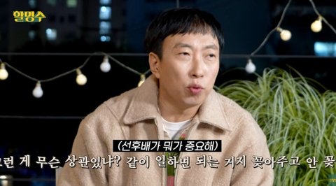 '프로그램에 좀 꽂아봐'라고 말하는 박명수. 유튜브 채널 '할명수' 영상 캡처이용진이 “제가요? 아직까지 제가… (어떻게 감히)”라고 말하자 박명수는 “야, 그런 게 무슨 상관이냐. 선후배가 뭐가 중요해. 같이 일하면 되는 거지”라면서 적극적으로 구직 의사를 밝혀 웃음을 자아냈다.하지만 오히려 박명수의 이런 태도에 이용진은 “형님은 이게 리스펙이다. 연차가 낮은 후배에게 ‘야 나 좀 꽂아 봐’라고 말하는 게 쉽지 않은 일인데”라고 감탄하는 모습을 보였다.