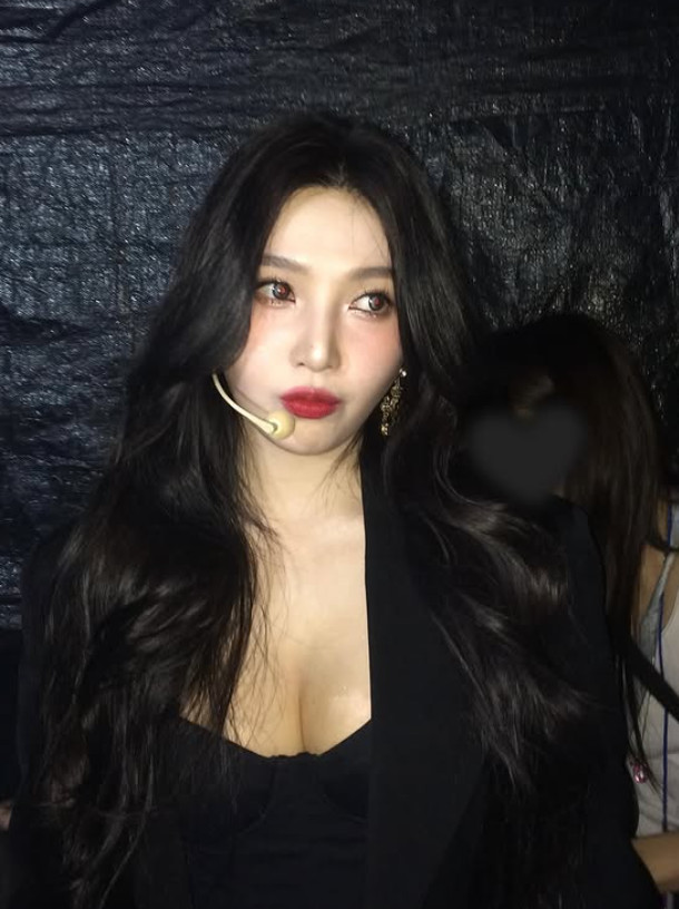 공개된 사진 속 조이는 검정 원피스와 재킷을 입은 채 포즈를 취하고 있다. 가슴라인까지 파인 의상을 입고 섹시미를 뽐내고 있다.