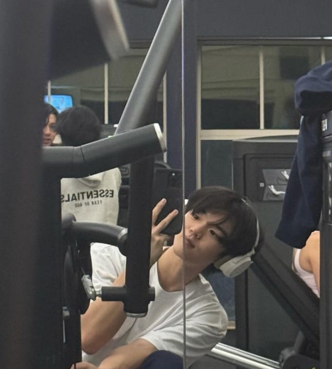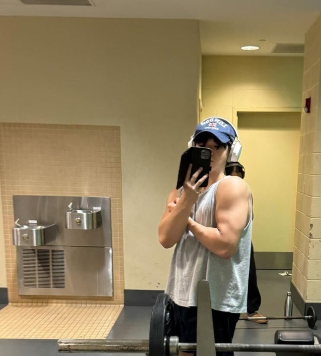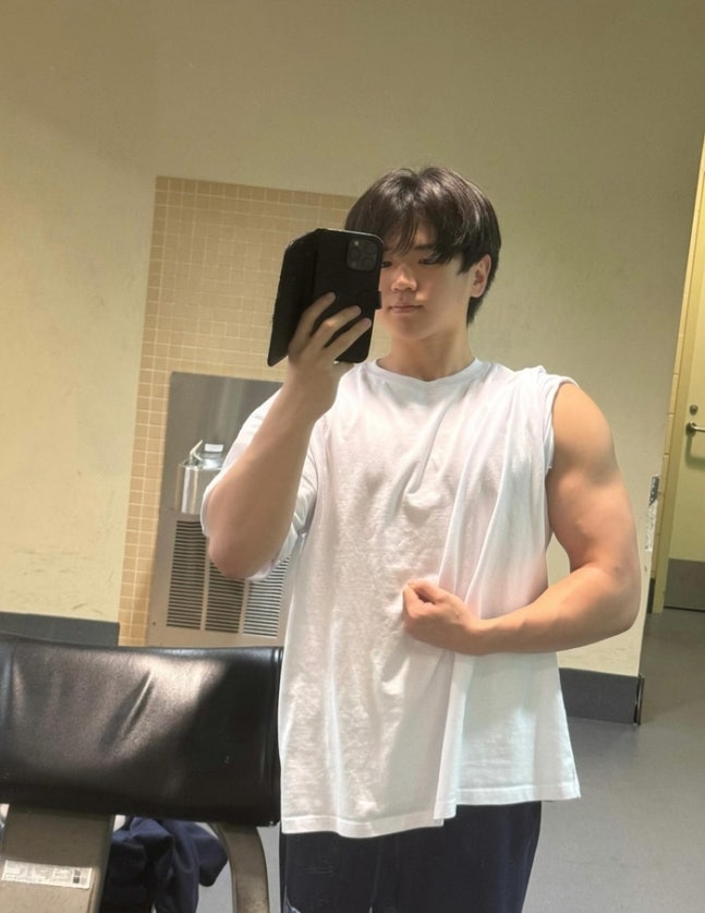 윤후는 15일 자신의 SNS에 “정진… 중요한 건 식단”이라는 짧은 글과 함께 운동 중 찍은 거울 셀카를 공개했다. 사진 속 윤후는 넓어진 어깨, 짜릿할 정도로 단단한 팔 근육, 성숙해진 얼굴선까지 갖춘 완성형 ‘벌크업 몸짱’이었다.
