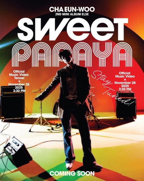 차은우는 13일 오후 공식 계정을 통해 두 번째 솔로 미니앨범 '엘스'(ELSE)의 수록곡 '스윗 파파야' 오피셜 뮤직비디오 공개를 알리는 커밍순 이미지를 게재했다.