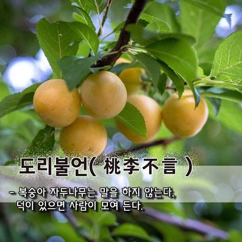 도리불언桃李不言 – 복숭아 자두나무는 말을 하지 않는다, 덕이 있으면 사람이 모여 든다.