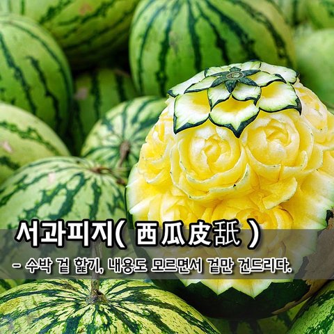 서과피지西瓜皮舐 - 수박 겉 핥기, 내용도 모르면서 겉만 건드리다.