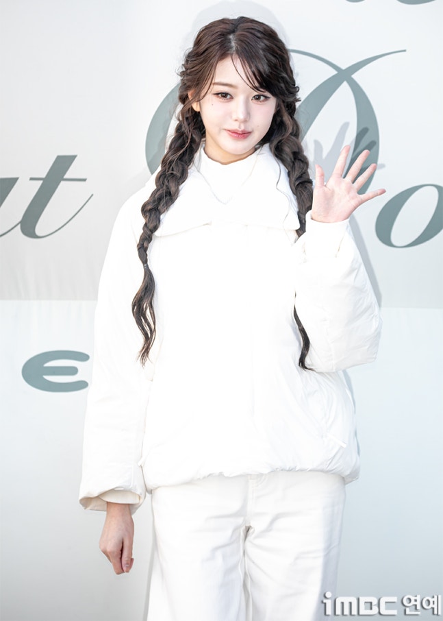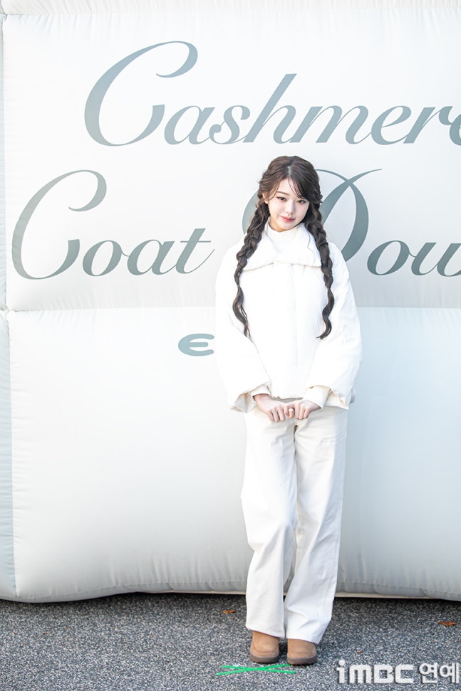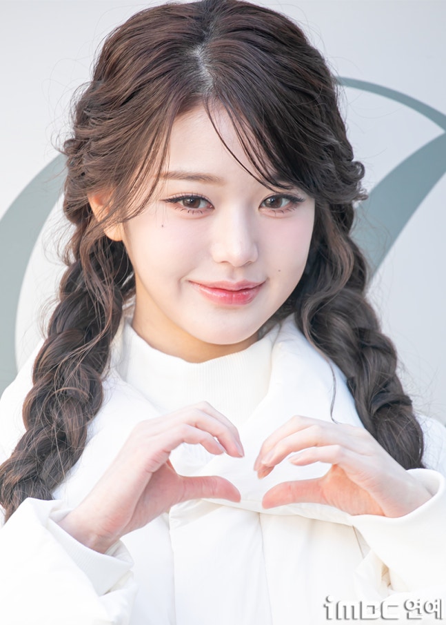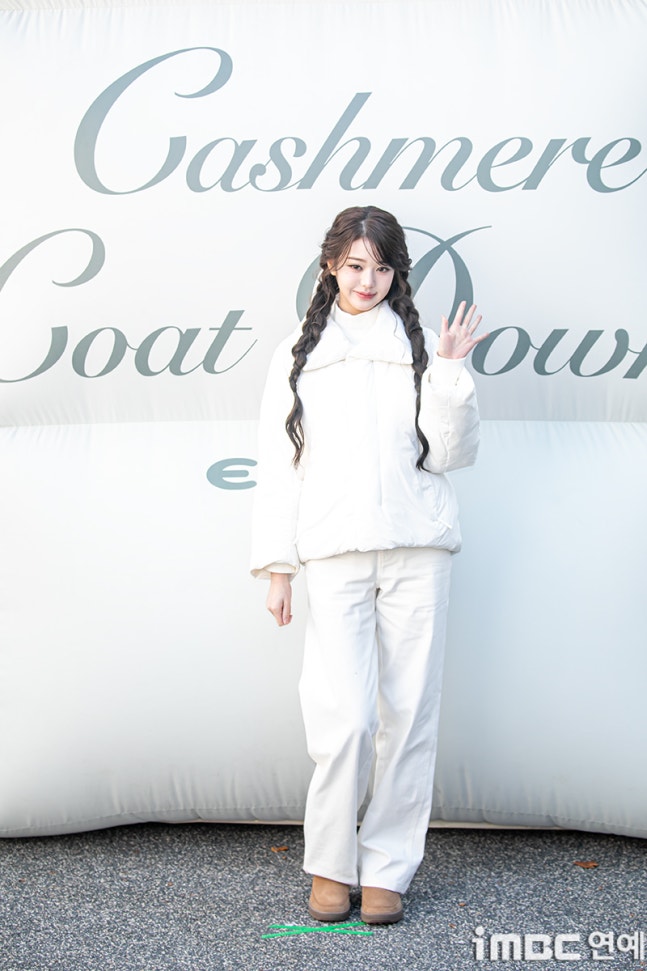 아이브(IVE) 장원영이 16일 오전 서울 성수동에 위치한 한 카페 야외테라스에서 열린 아웃도어 패션 브랜드 팝업스토어 오픈 행사에 참석해 포즈를 취하고 있다.이날 장원영은 귀여운 양갈래 굵은 댕기 헤어와 화이트 상의 패딩, 와이드 팬츠 브라운 어그 부츠 등의 러블리한 패션을 뽐냈다. 장원영은 주말 아침부터 러블리한 미모를 뽐내며 윙크 하트 원영턴 등 다양한 포즈를 취하며 행사를 즐겼다.