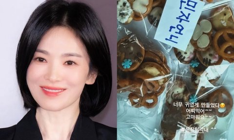 송혜교는 14일 자신의 계정에 "너무 귀엽게 만들었다. 어찌 먹어. 고마워요"라는 짧은 글과 함께 분장팀 막내 스태프에게 선물 받은 과자 사진을 업로드했다. 공개된 사진 속에는 귀여운 모양으로 정성스럽게 만들어진 수제 쿠키들이 투명 포장지에 가지런히 담겨 있었다. 눈꽃 장식, 동물 얼굴, 미니 프레첼 등 다양한 모양의 쿠키가 눈길을 끌었다.