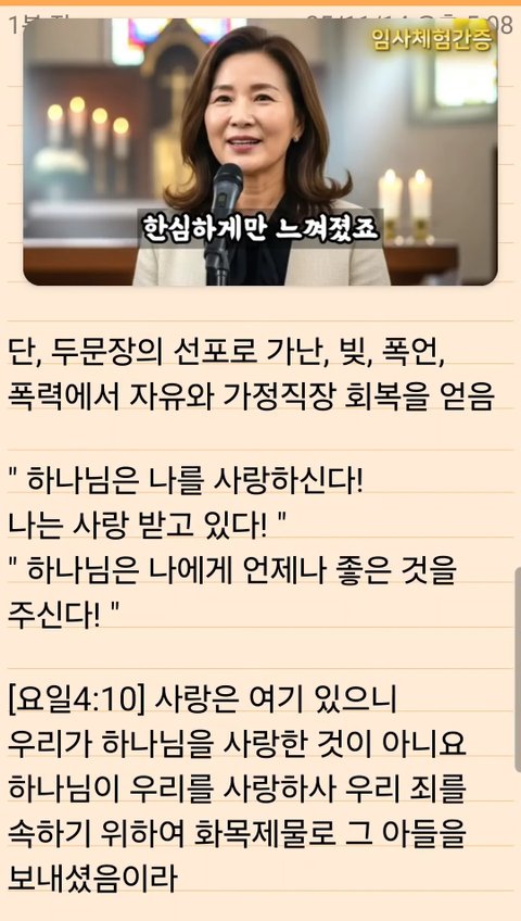 단, 두문장의 선포로 가난, 빚, 폭언, 폭력에서 자유와 가정직장 회복을 얻음