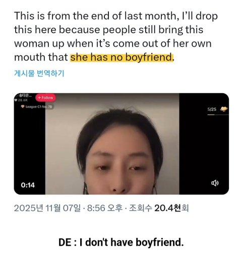 지금까지 ㅅㄷㅇ이 올렸던 자료들 전부 20년 21년초까지의 과거 자료들임 / 저 영상도 20년 말에 찍은 과거 영상임 / ㅅㄷㅇ 틱톡 라방 최상위 시청자들인 태쿠커들 정국악개 뷔악개들이 계속 댓글로 몰아가고 루머까지 퍼트리니 얼마전에 본인이 직접 영어로 남친 없다고 얘기함 / 최근까지 수차례 남친 없다고 얘기했음 맨날 틱톡 라방 보면서 ㅅㄷㅇ 스토킹하는 국뷔알페서들 특히 정국악개들이 제일 잘 알지 않나?