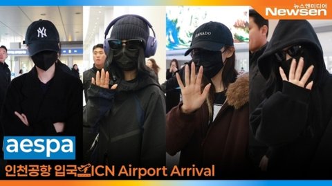 [인천국제공항=뉴스엔 최재현 기자] 가수 에스파 멤버 카리나, 지젤, 윈터, 닝닝이 11월 17일 해외 일정을 마치고 인천시 중구 인천국제공항을 통해 입국하고 있다.