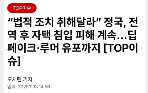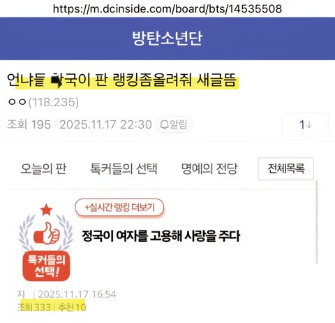 아무도 관심없으니 갤망구들 매일 똑같은 글쓰고 디시 갤에서 좌표찍고 톡선 보내고 댓글 도배해서 정국 까질하는 중 ╋ 판 관리자도 이렇게 갤에서 좌표찍고 선동하는 글은 관리 좀 해라