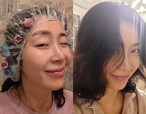 이번에 함께 공개된 사진에는 셀프 펌을 하고 있는 송윤아의 모습이 담겨있다.
