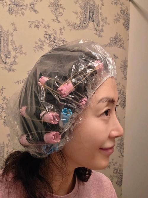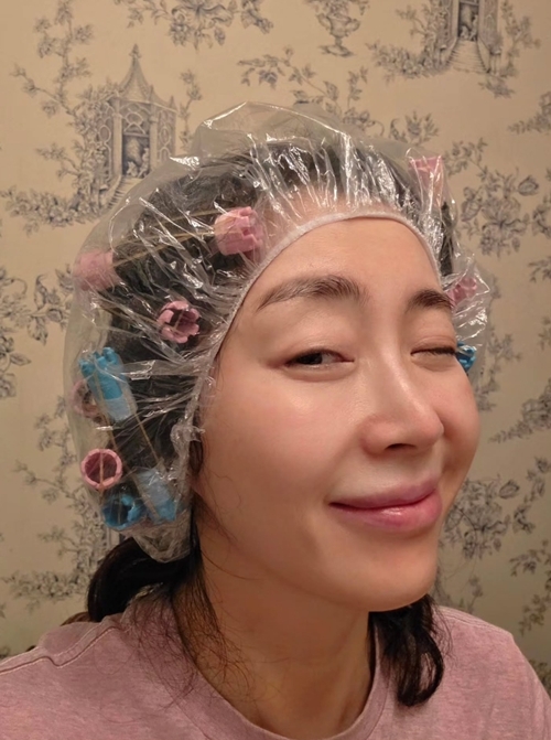 사진=송윤아 SNS앞서 지난 15일에도 그는 “나는 이것도 하는 사람이 되었다… 10분 뒤 어떻게 돼있을지 참…”이라며 셀프파마 중인 모습을 공개했다. 비닐캡에 컬러 롯드를 촘촘하게 고정한 채, 특유의 장난스러운 윙크로 웃음을 자아냈다.