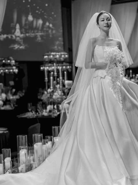 공개된 사진 속 김옥빈은 웅장한 결혼식장에서 아름다운 비주얼을 자랑하고 있다. 남편 모습은 꽁꽁 숨긴 채, 단독으로 촬영한 사진만 공개해 눈길을 끈다.