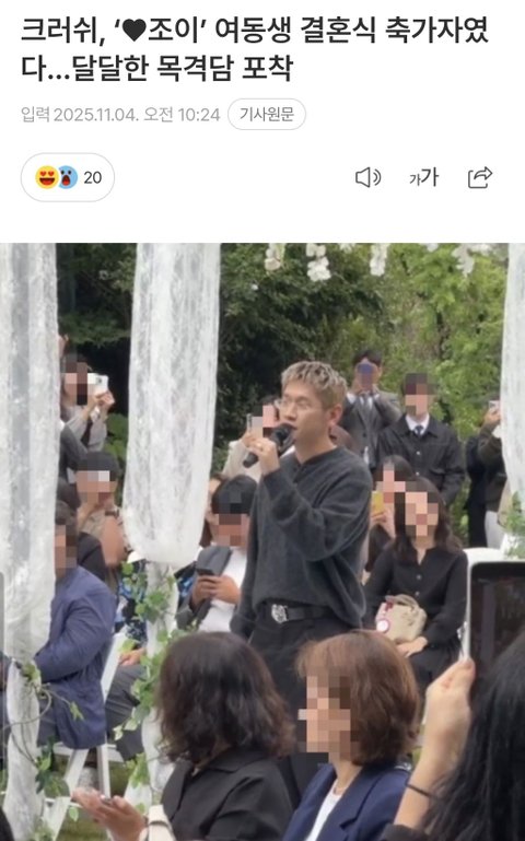 크러쉬가 조이 여동생 결혼식에 축가로 참석