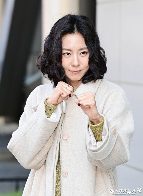 이날 생방송에 참석한 가수 겸 배우 유이가 출근길에 포토타임을 갖고 있다.