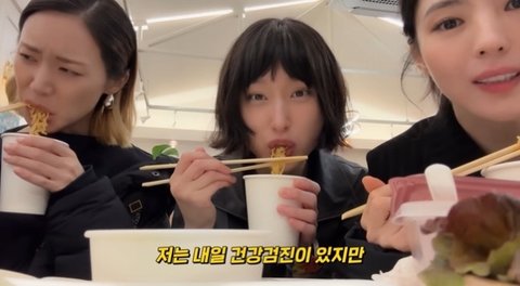 현장에서 야식으로 라면을 먹던 한소희는 "저는 내일 건강검진이 있지만 먹습니다. 의사 선생님 죄송해요. 어쩔 수 없어요. 라면은 참을 수가 없어요"라며 "이건 아프더라도 먹어야 된다"고 덧붙였다.