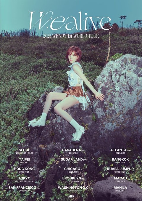 소속사 어센드는 22일 자정 웬디의 공식 SNS를 통해 ‘2025 웬디 첫 번째 월드 투어 ‘위얼라이브’(‘2025 WENDY 1st WORLD TOUR’) 스케줄 포스터를 공개, 글로벌 팬들의 마음을 두근거리게 만들었다.