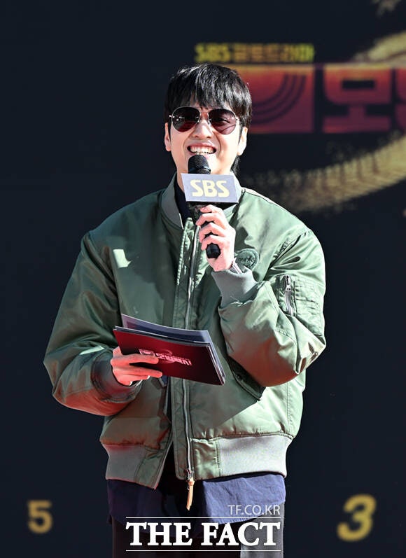 개그맨 유재필이 18일 오후 서울 양천구 목동 SBS에서 열린 '모범택시3' 레드카펫 행사에서 진행에 앞서 포즈를 취하고 있다. /이새롬 기자