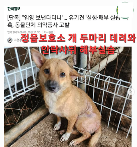 이런 문제점 개선을 위해 안락사된 유기동물 사체의 수의학 교육 기증 허용에 관한 동물보호법 개정안이 국회에 발의된 상태랍니다.