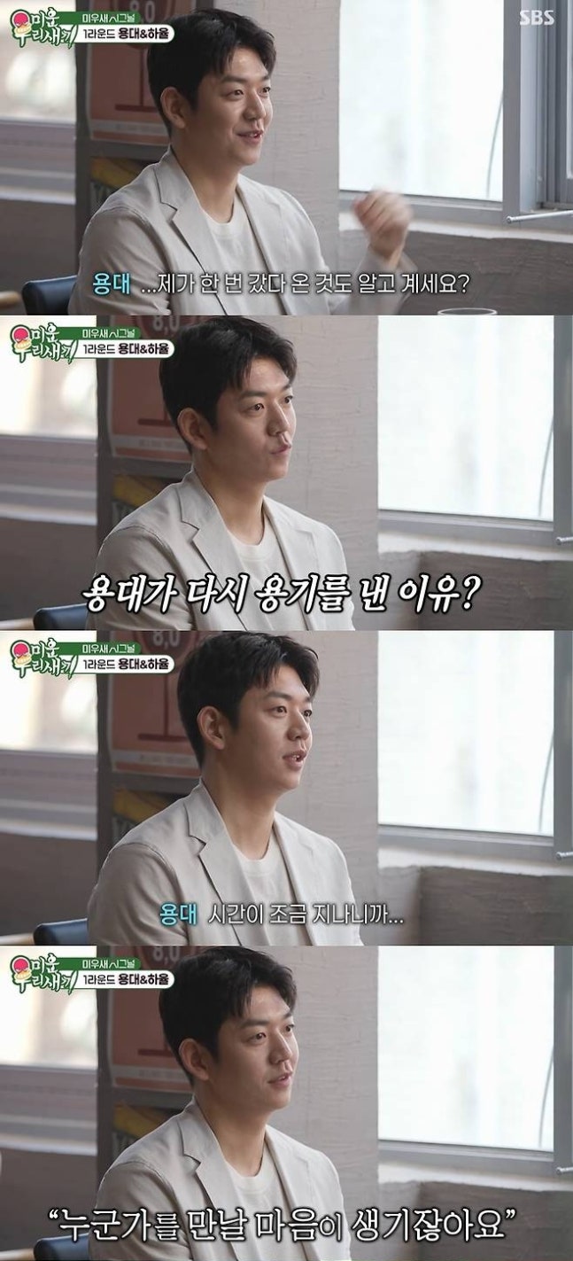 이용대는 "제가 한 번 갔다 온 것도 알고 계시냐"며 조심스럽게 이혼 과거를 꺼냈다. 그러면서 "헤어짐이 있고 나서 결혼에 대한 부담감이 있었는데 시간이 지나니까 마음이 생기지 않냐. 그러면서 좋았던 점도, 잘못했던 부분도 있다. '그런 걸 잘 해보면 좋지 않을까?' 그런 생각을 하고 있다"며 재혼에 긍정적인 마음이 생겼다고 털어놨다.