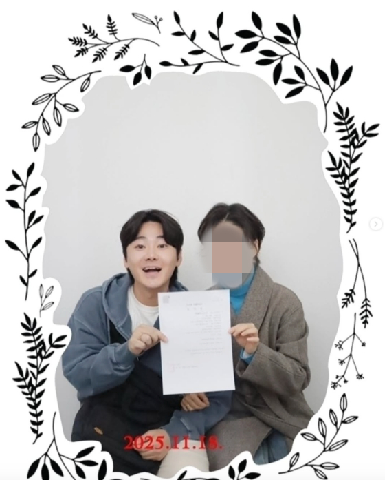 이와 함께 공개한 사진에는 혼인 신고를 마치고 인증샷을 남기는 이 PD 부부의 모습이 담겼다.