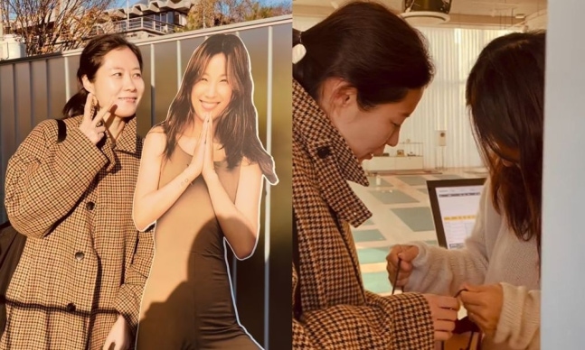 공개된 사진 속 문소리는 이효리와 함께 그가 직접 운영하는 요가원에서 나란히 요가 자세를 취하며 두 손을 모은 '나마스떼' 포즈를 취했다. 두 사람은 과거 SBS 예능 '매직아이'에서 동반 MC로 출연해 인연을 맺었으며 현재까지도 우정을 유지 중이다.