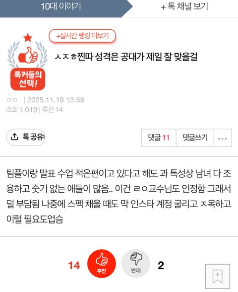 구라안치고 대학친구가 타과 고딩때친구 1명임 나중에 대외활동 공모전 이런거 할거 생각하니까 정신이아득해진다 심지어 경영임