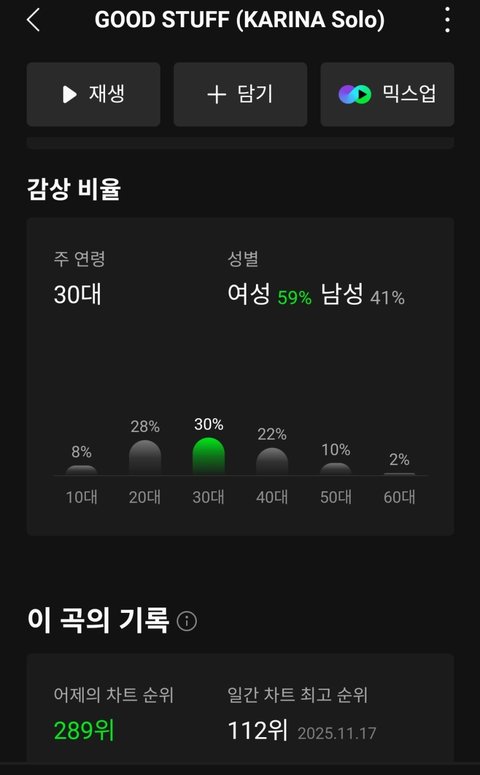 팩트 : 카리나는 니가 빠는돌이 평생 못해볼 솔로 1위 이미 찍어봤고 어차피 저건 정식 컴백 솔로곡도 아니고 그냥 콘서트 곡이라 저정도 순위인게 당연한거임 ㅋㅋ 에스파보고 음원 사재기네 뭐네 했던 ㅈ망돌퀴들 뇌피셜만 개소리라는거 오히려 증명이지 뭐 ㅋㅋㅋㅋ 원래 저게 정상이야~ 카리나 up이 특별히 대박났던거지 ㅋㅋㅋ