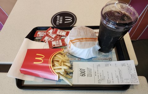 (사진1 설명) 오늘 점심식사. 맥도날드 페퍼로니더블 / 후렌치 후라이 라지, 콜라 라지 <(원판 사진 resize) 촬영정보: 셔터속도 1/180s, 초점거리 23mm, 조리개 f1.8, 촬영감도 ISO 100, 노출 biasing(바이어싱, Q·point(동작점) 설정) 0.0ev, 삼성 Galaxy S22 Ultra 휴대폰 카메라 사용, 최대우 촬영>