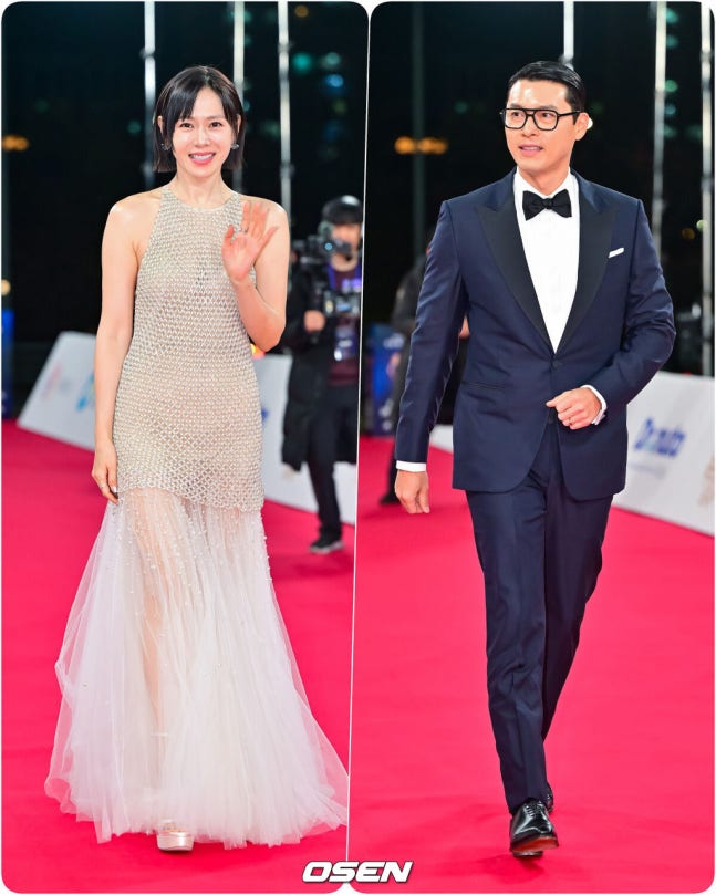 그런가 하면 현빈은 '하얼빈'으로 남우주연상을 받은 뒤 객석에 앉은 손예진을 향해 "존재만으로 제게 너무나 힘이 되는 와이프 예진씨, 우리 아들 너무너무 사랑하고 고맙다고 말하고 싶다"라고 말했다. 그 순간 카메라에 포착된 손예진이 손하트를 만들어 보이며 훈훈함을 더했다.