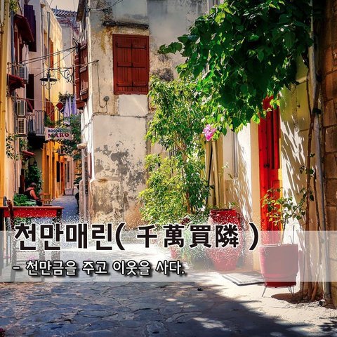 천만매린(千萬買隣) - 천만금을 주고 이웃을 사다.