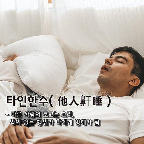 타인한수(他人鼾睡) - 다른 사람의 코고는 소리, 악의 없는 행위가 나에게 방해가 됨