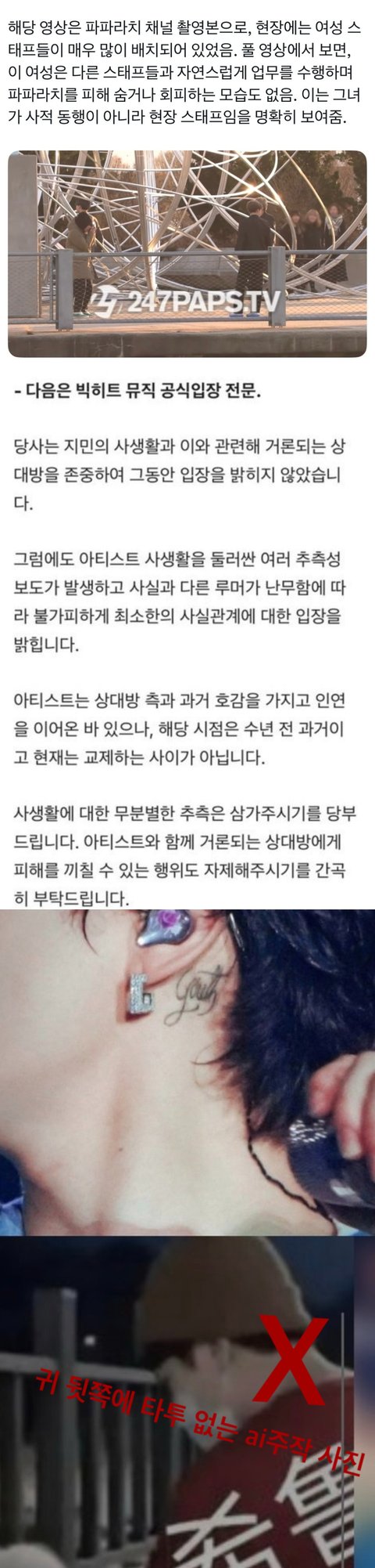 최근 이 송다은과 지민의 클립이 해외 SNS 플랫폼에서 크게 화제가 되었습니다. 영상 속에서 지민이 한 여성과 함께 있는 모습이 선명하게 보이는데, 그 여성이 송다은과 매우 흡사합니다. 특히, 송다은이 지민이 포착된 장소와 동일한 위치를 자신의 스토리에 올리면서 논란이 더욱 커졌습니다.