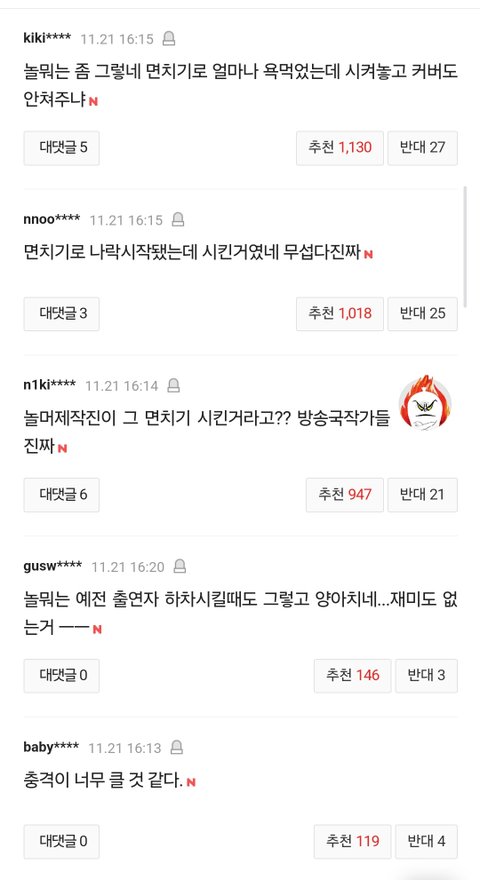놀뭐는 지들이 면치기로 매장시켜놓고 팽하네.